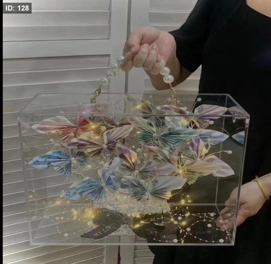صندوق اكريلك ع شكل حقيبه مع مسكه يد من لؤلؤ