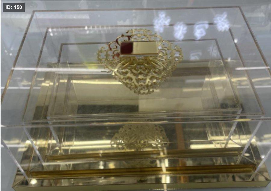ثلاث قطع اكريلك مع قاعده ذهبيه